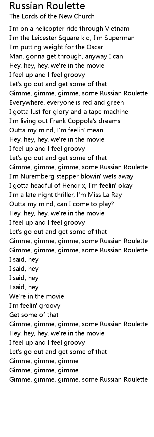 Red Velvet (레드벨벳) - Russian Roulette (러시안 롤렛) Easy Lyrics No copyright infringement intended. The song and the . Russian Roulette Lyrics are a subject that is being searched for and liked by netizens now. You can Download the Russian Roulette Lyrics here. Get all royalty-free pic. Rihanna - Russian Roulette Lyrics on Screen, Rihanna - Russian Roulette (Lyrics) Rihanna - Russian Roulette Rihanna - Russian Roulette Rihanna - Russian Roulette..